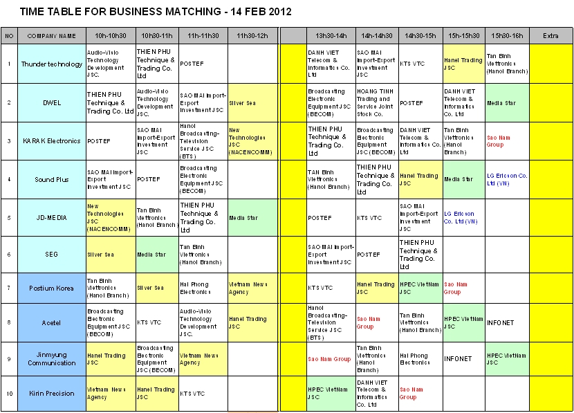 Để các doanh nghiệp tham khảo gặp gỡ thông qua Bản Thời gian gặp gỡ 14/2