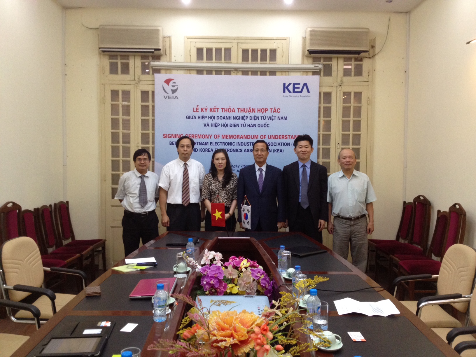 Các doanh nghiệp điện tử Hàn Quốc đã có mặt rất sớm ở Việt Nam từ những năm đầu đổi mới, hội nhập và hiện đang rất thành công tại thị trường Việt Nam với hai thương hiệu hàng đầu là Samsung và LG. Quan hệ giữa VEIA và KEA cũng đã được hình thành và phát triển trong những năm gần đây. Tháng 7/2008 đoàn đại biểu KEA do Phó Chủ tịch Don Hoon Yun dẫn đầu đã tham dự Diễn đàn Điện tử Châu Á lần thứ 5 do VEIA đăng cai tổ chức tại Thành phố Hồ Chí Minh. Tháng 4/2012 đoàn đại biểu KEA do Phó Chủ tịch Jae-Kwan Jeong dẫn đầu đã tham dự Diễn đàn Điện tử thế giới lần thứ 17 tại Cebu (Philippines) và đã bỏ phiếu ủng hộ VEIA đăng cai tổ chức Diễn đàn Điện tử thế giới lần thứ 18 tại Việt Nam vào tháng 5/2013. Chuyến đi thăm và làm việc của Đoàn đại biểu Hiệp hội Điện tử Hàn Quốc tại Việt Nam và việc ký kết bản Ghi nhớ Hiệp hội Doanh nghiệp Điện tử Việt Nam và Hiệp hội Điện tử Hàn Quốc đã thắt chặt thêm mối quan hệ sẵn có giữa VEIA và KEA.