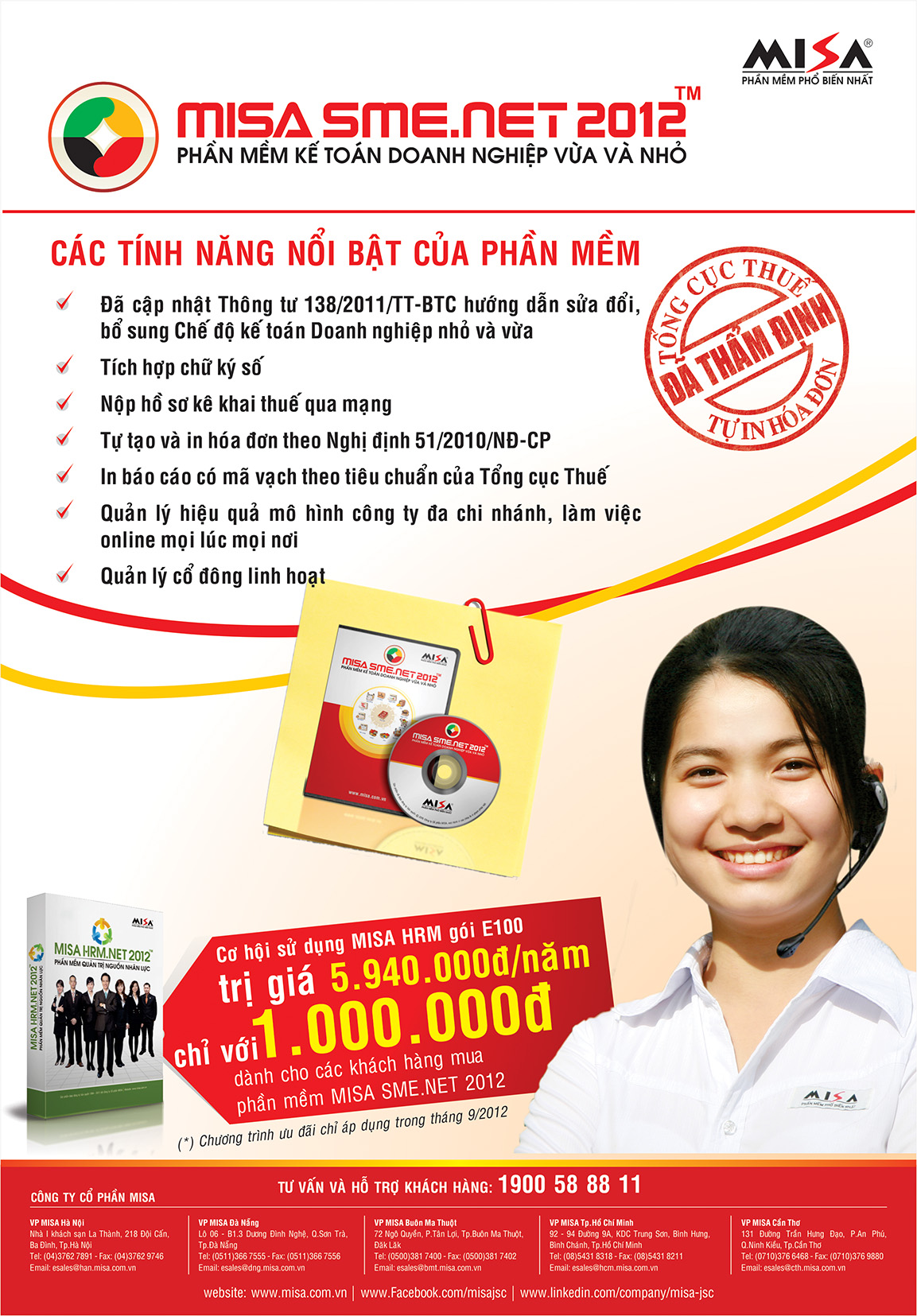 Để giúp khách hàng của MISA giảm thiểu chi phí đầu từ và nâng cao hiệu quả ứng dụng Công nghệ Thông tin, hỗ trợ doanh nghiệp quản trị tốt công tác Tài chính kế toán và Quản trị Nguồn nhân lực thời khủng hoảng, trong tháng 9 này Công ty Cổ phần MISA triển khai chương trình ưu đãi đặc biệt: Khách hàng đang dùng MISA SME.NET hoặc mua mới phần mềm MISA SME.NET 2012 (thanh toán trong tháng 9) Chỉ cần trả thêm 01 triệu đồng sẽ sở hữu thêm phần mềm Quản trị Nguồn nhân lực MISA HRM.NET 2012 gói E100- Gói dành cho doanh nghiệp có quy mô từ 50 – 100 nhân sự, trị giá 5.940.000 VNĐ (sử dụng trong 1 năm).